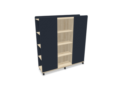Moving Wall Tower är en ljudabsorberande rumsavdelare med förvaring och diskret kabelsanering.