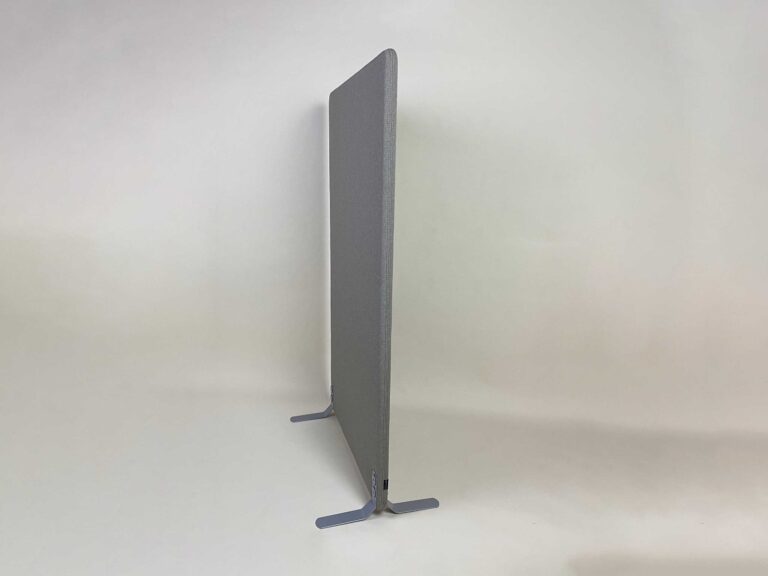 Ljudabsorberande golvskärm uppbyggd med en träram fylld med 30 mm ljudabsorbent och 5 mm skumlaminerat tyg på vardera sida.